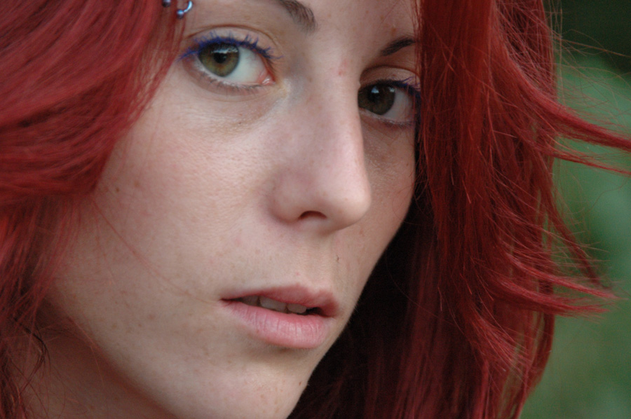 Je suis une jeune femme dynamique et pétillante de 23ans. Je suis piercée (arcade droite + langue + labret) et tatouée (kanji sur le bas ventre + dragon tribal épaule droite). Cheveux colorés rouge (effet roux), yeux verts. 148cm pour 38kilos. Mensurations : 75-60-75. pointure 35. Conf. S/XS